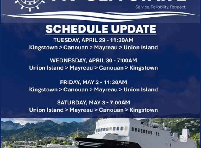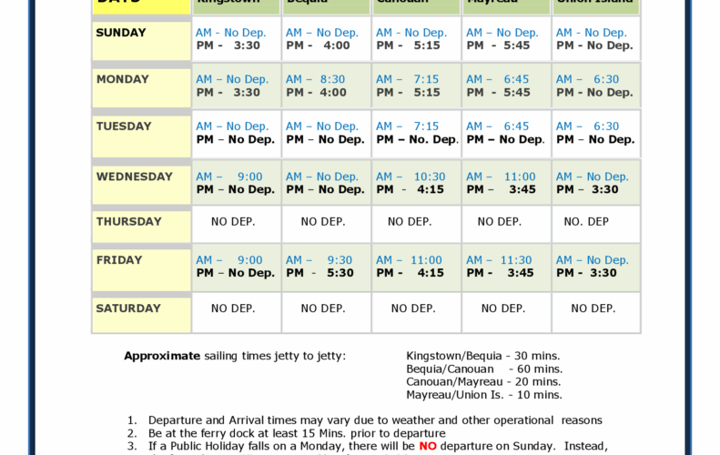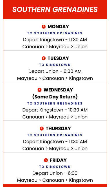 The following schedule reflects the current service for the Southern Grenadines as operated by Bequia Express: